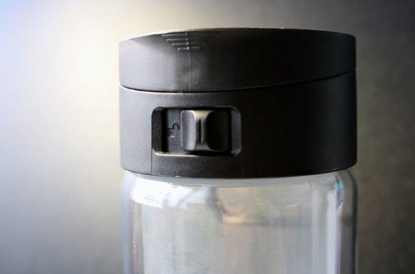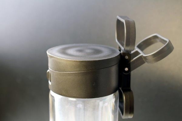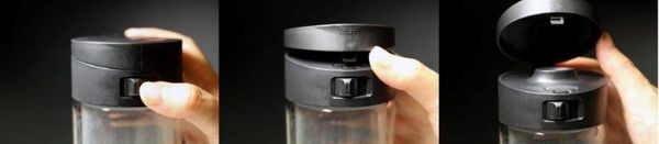 上蓋有兩個重點,一是開合的安全鎖扣,是採用機械式原理,一般使用彈簧雖然一彈蓋就開有方便,但我們都知道,一段時間彈簧就出問題了,可惜了! 因為Glasstic這種卡榫設計讓放在背包內這支瓶子,不管它怎麼橫衝直撞或被擠壓,不必擔心蓋子彈開鬆脫而弄濕包包了!