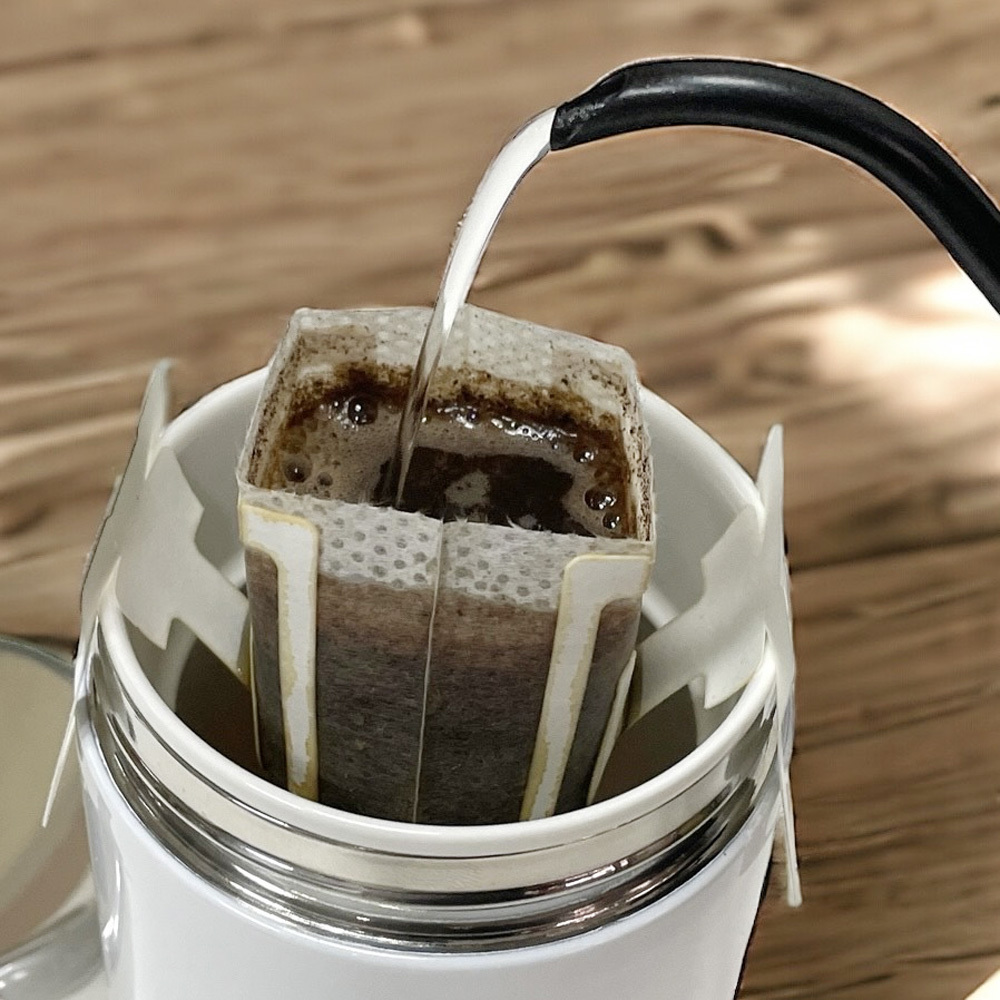 在咖啡館DIY煮出自己的咖啡。為了細慢品嚐,剩下的就先裝入自己的骨瓷保溫瓶中......