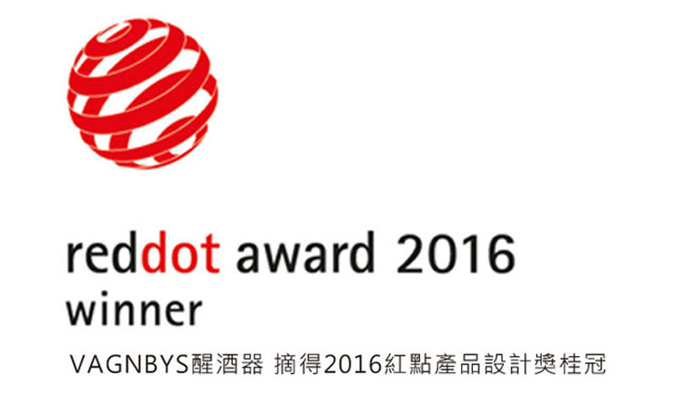 慕尼黑,2016年4月5日。Vagnbys 醒酒器以獨特的設計品質,贏得國際上極負盛名的紅點設計獎。來自57國共5200件作品參與本屆競賽,只有卓越出眾的設計作品才能獲得紅點國際評審團挑剔的眼光。