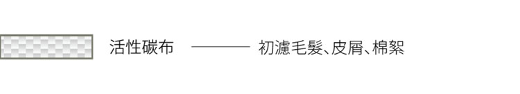 含活性碳顆粒,可吸附部分異味,並可過濾如毛髮、皮屑等大顆粒汙染物,延長主濾網壽命。