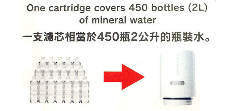 濾心材質:中空絲膜、離子交換纖維、活性碳 本體材質:ABS樹脂 濾芯效期:約3~6個月 (每日使用量10公升計)。(依地區水質而有所不同)。 餘氯去除量:900公升。 除濁能力:900公升。(原水10度) 除濁能力:2,700公升。(原水2度) 過濾流量: 1.6公升/分 最小水壓需求 : 0.07 MPa 尺寸 : 124 x132 x79 mm