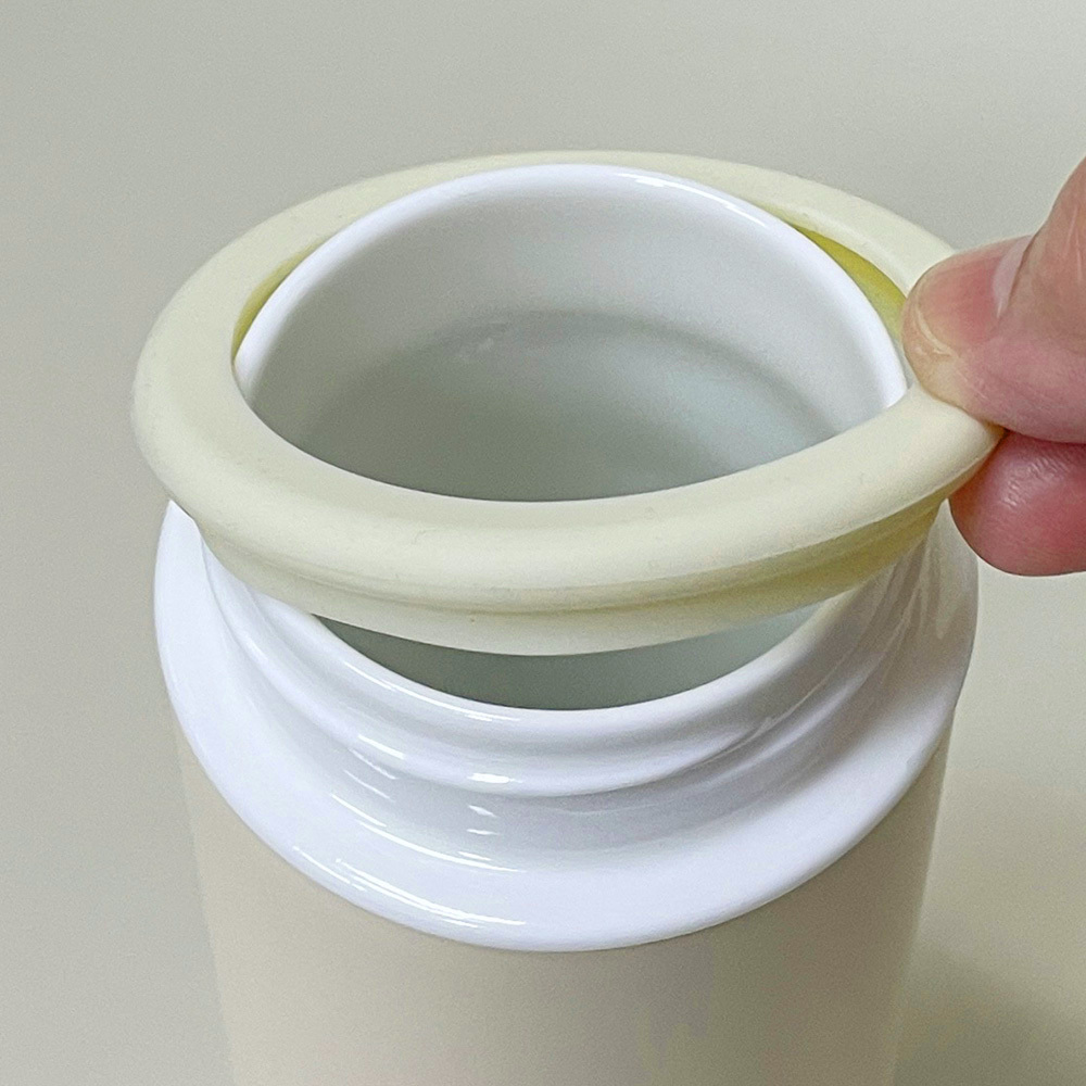 • 保溫杯容量以實測到杯口為準,瓷胎內膽經過燒製,受燒製環境影響,每批的容量可能會有2~3%的差異。