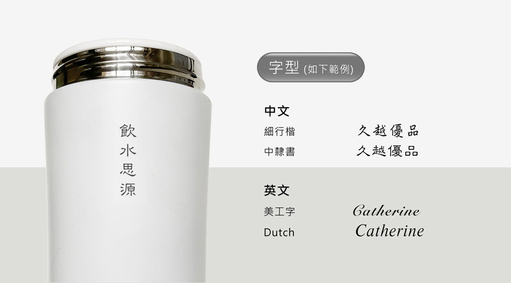 • 保溫杯若接近金屬色,刻字跟底色系較相近。