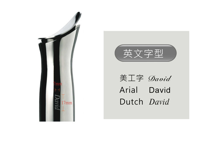 •僅限英文,直式刻字(如上圖),字數8個字母以內,包含空格、標點等任何符號