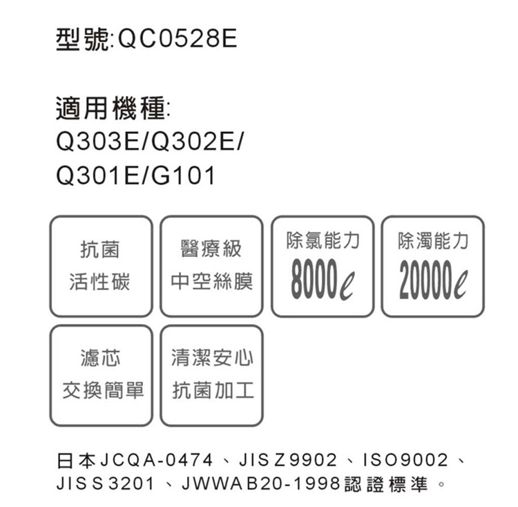 除濁能力:4000公升(原水10度)、20000公升(原水2度)
