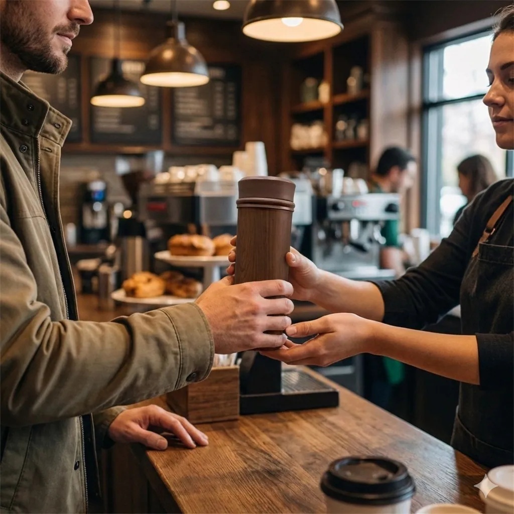 買回去,你可以把它放在辦公室或家裡,好好享受使用瓷器喝咖啡喝茶,天冷時,它的保溫功能讓你可以慢悠悠的享用熱咖啡,是平真陶瓷內膽,的凡的小幸福。它材質耐磨永不質變,可陪你用到天荒地老。
