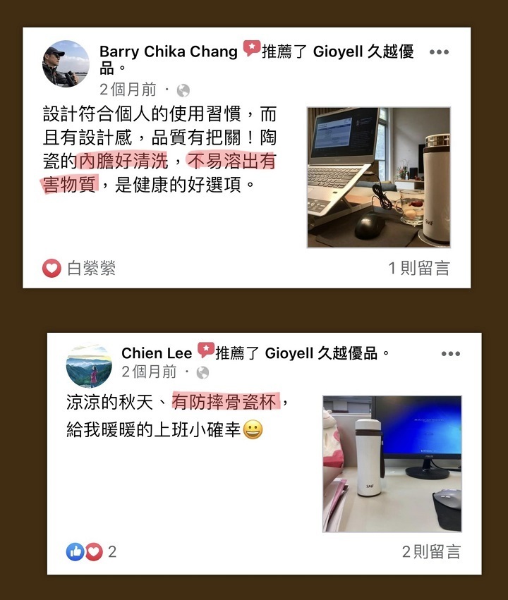 • 清洗這類瓷內膽的保溫杯,瓶身及上蓋請勿浸泡水中,只要刷沖洗即可。