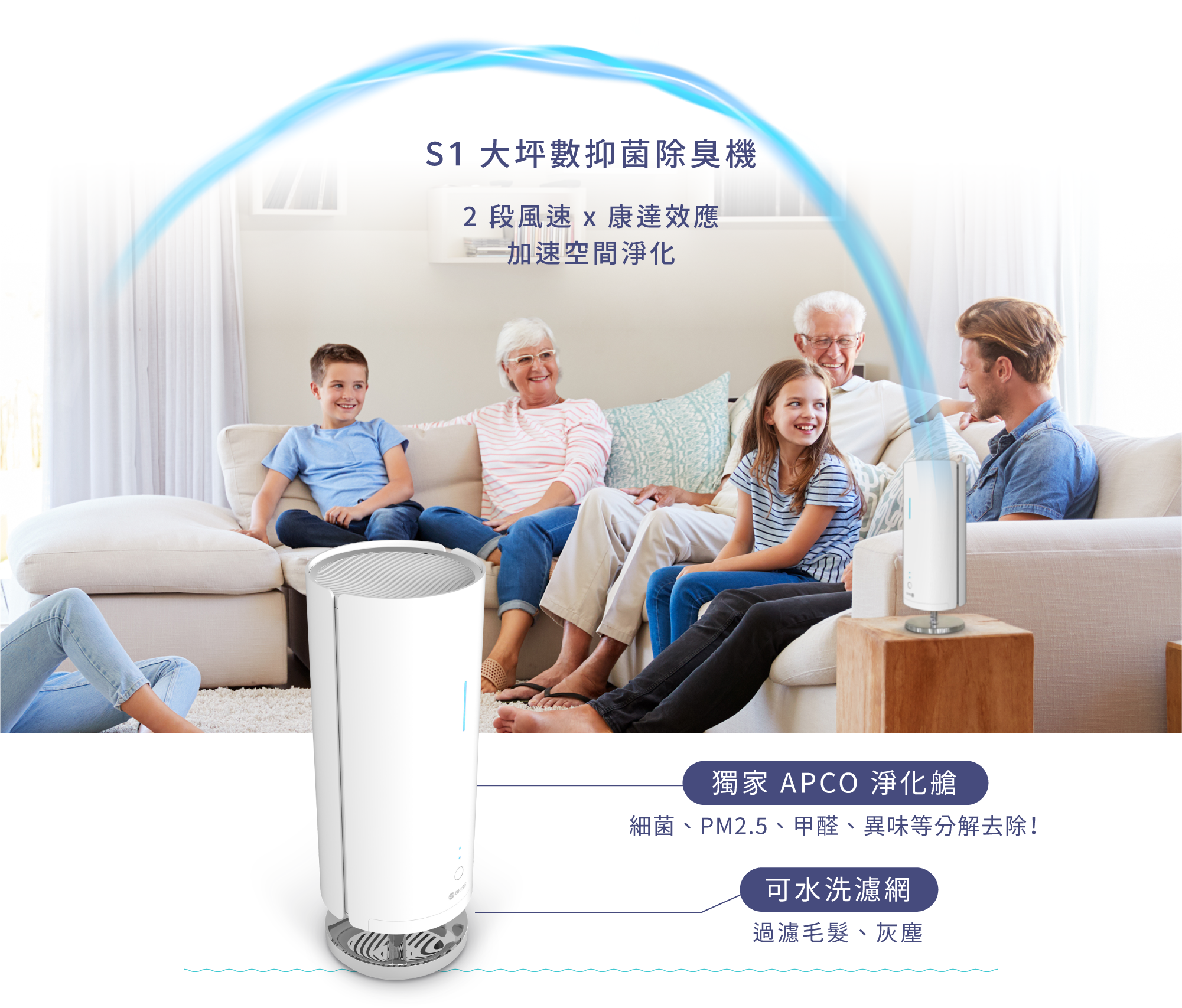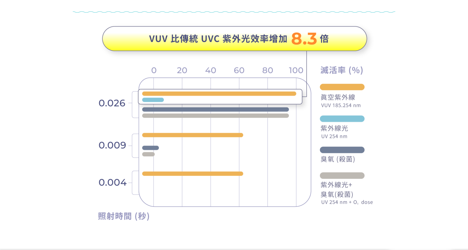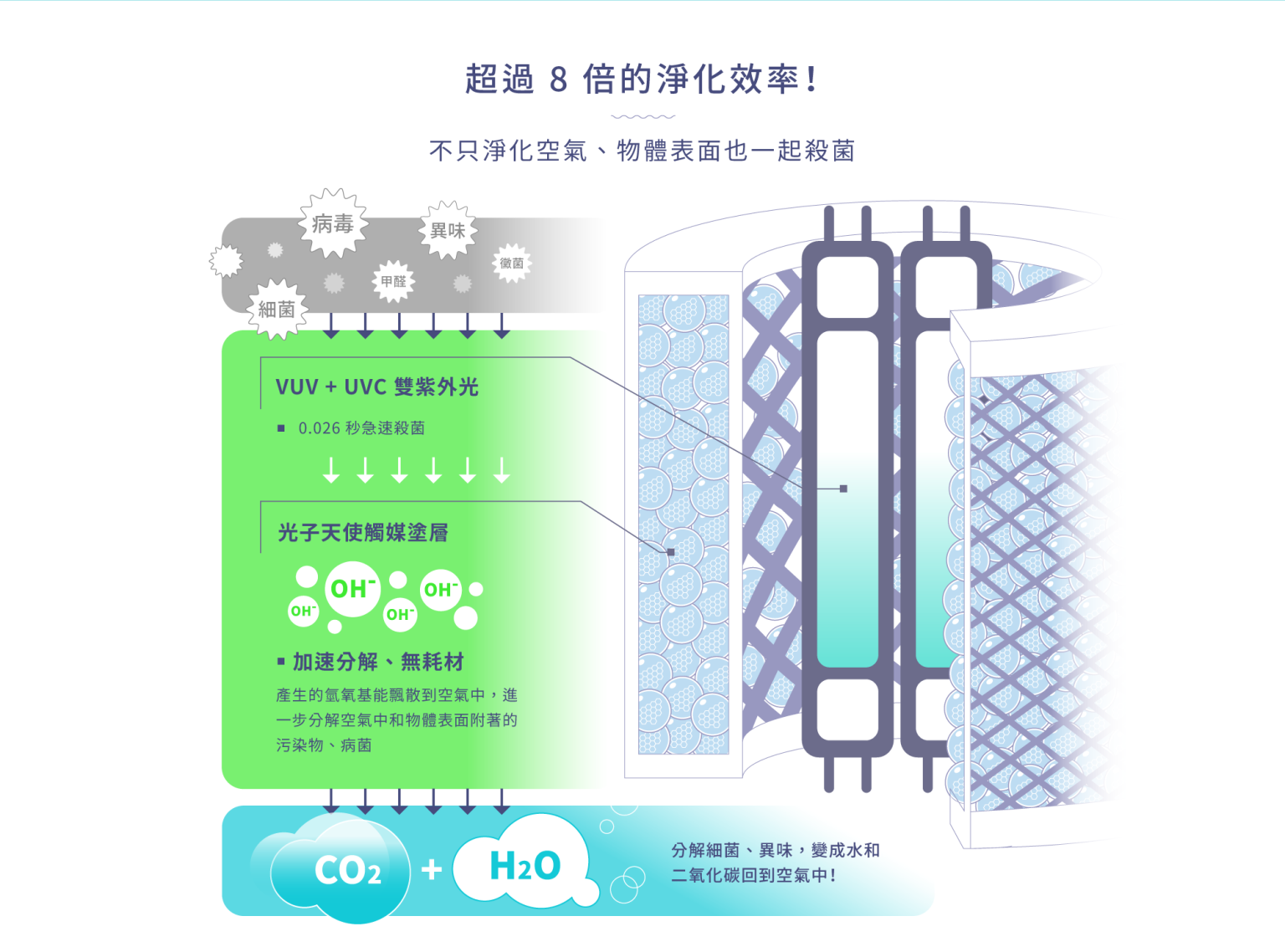 • 8倍效率,消滅空氣、物體表面病菌,無毒無味