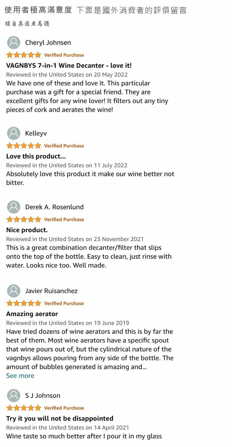 醒酒、倒酒、濾酒、瓶塞,總成「七合一醒酒器」。